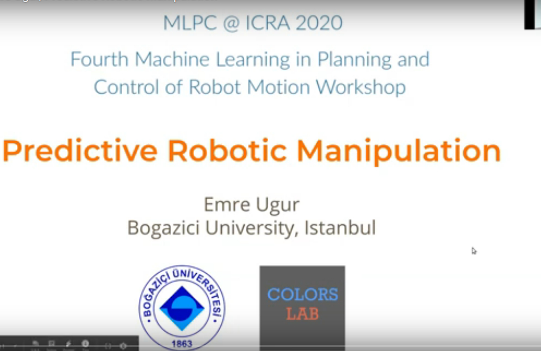 - Organized/co-organized IROS 2023 Workshop on World Models and Predictive Coding in Cognitive Robotics (link), IROS 2022 Workshop on Life-long Learning of High-level Cognitive and Reasoning Skills (link), RSS 2021 Workshop on Declarative and Neurosymbolic Representations in Robot Learning and Control (link), Türkiye Robotbilim Konferansı - ToRK2018, RSS 2018 Workshop on Computational Models of Affordance for Robotics, IROS 2018 Workshop on Language and Robotics, IROS 2017 WS on Machine Learning Methods for High-Level Cognitive Capabilities in Robotics, IROS 2016 WS on Machine Learning Methods for High-Level Cognitive Capabilities in Robotics, Shonan Meeting 2016 on Cognitive Development and Symbol Emergence in Humans and Robots, IROS 2015 Workshop on Learning object affordances, ICAR 2015 Workshop on Robot Learning, IROS 2013 Workshop on Neuroscience and Robotics, Humanoids 2012 Workshop on Developmental Robotics.